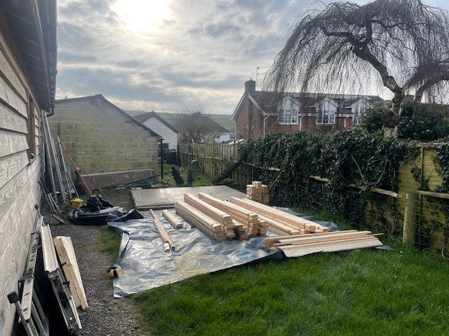 The recent buuild of a posh shed in Wiltshire. The Alex log cabin is a compact footprint log cabin with 44mm walls, double glazing and a tongue and groove roof and floor. This particular model is ideal as a small garden office with a 3 metre by 2.5 metre footprint. In this case the double doors provide enough access to easily store garden machinery including a large ride on mower.